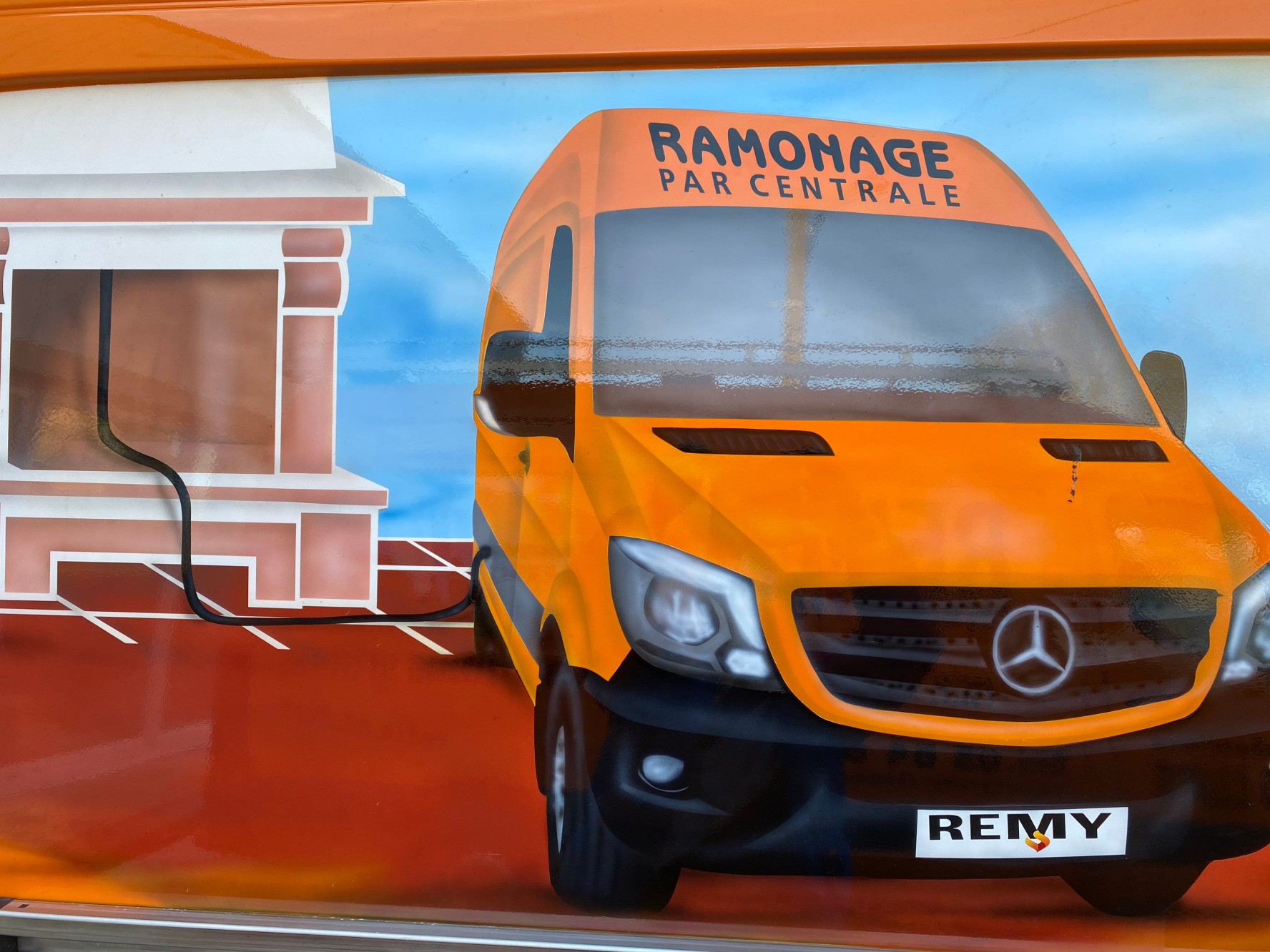 Véhicule équipé d’une centrale de ramonage PROGALVA, ce qui permet: